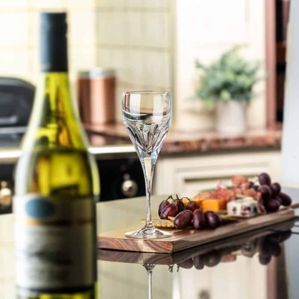 The Lewis collection is a weighted and resilient range that features a thumb cut pattern on the crystal, creating a sophisticated faceted effect. The perfect shape, size and weight, this wine glass is made from high quality lead free crystal and supplied in a premium navy gift box, perfect for wine drinkers. Upgrade to a luxurious gift set of 2 . Also available for red wine .