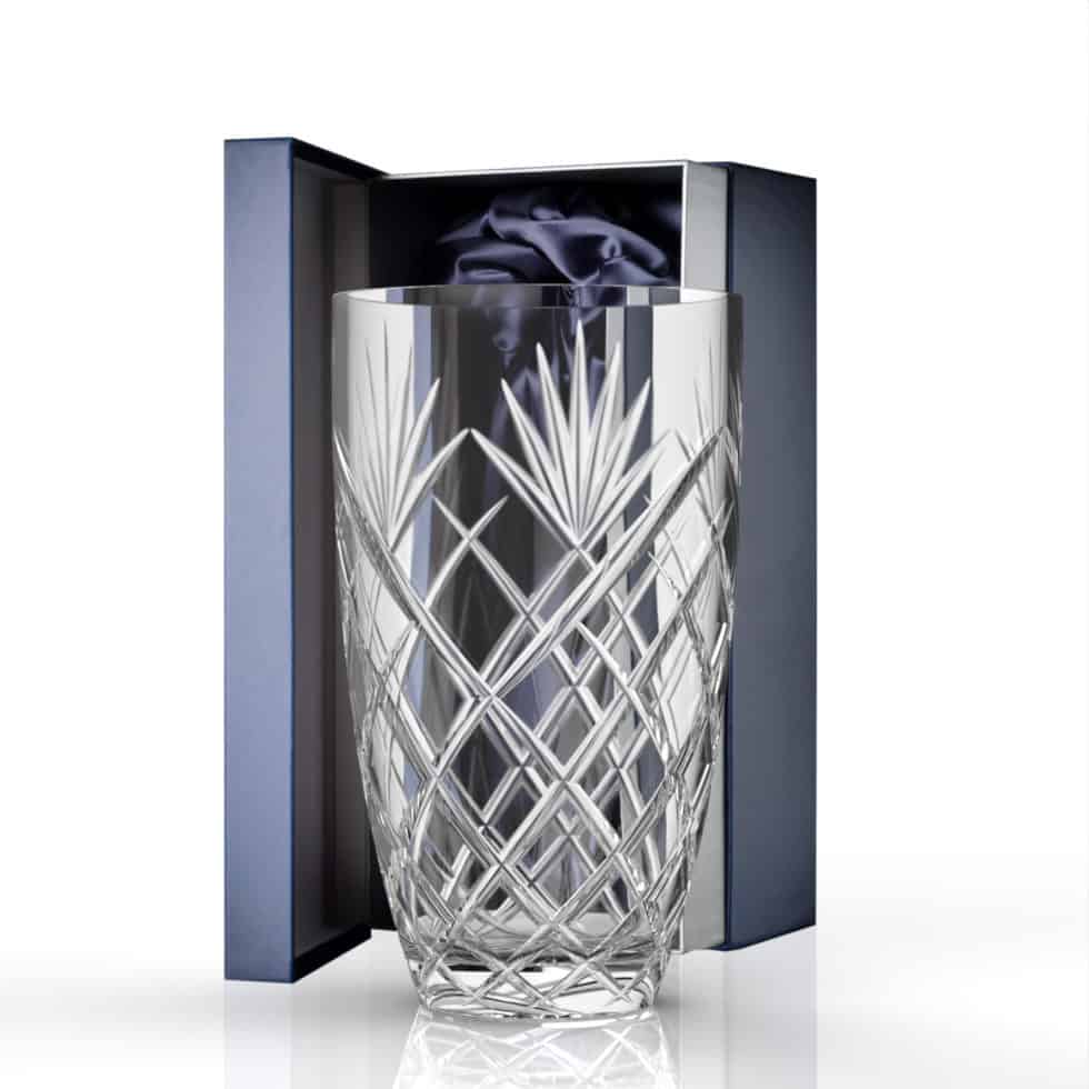 The Skye collection is our ultimate interpretation of traditional cut crystal which features one blank panel for personalisation. The crystal vase is supplied in a navy gift box, lovely for gifting to family and friends. Also available in sizes Small and Large.