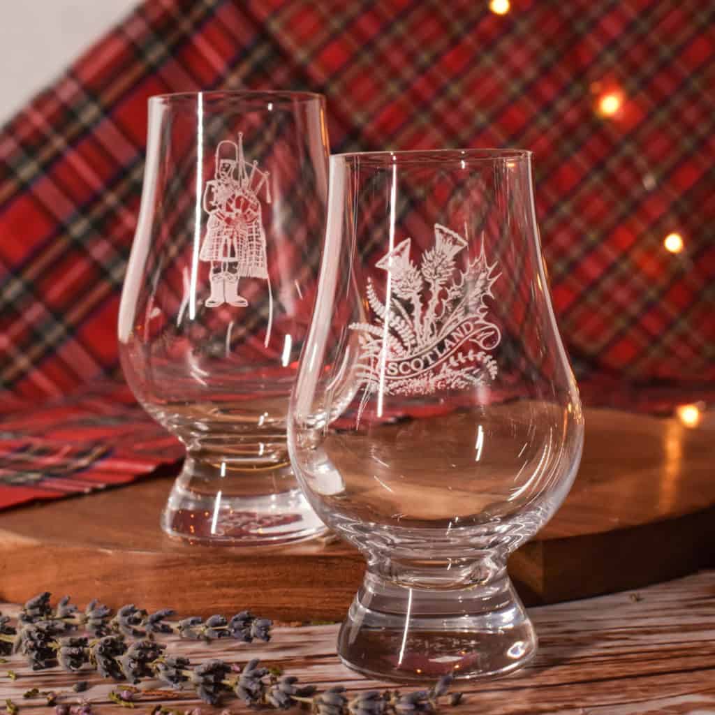 The Glencairn Glass is considered the definitive glass for whisky and now you can drink your dram from our range of decorated Glencairn Glasses, celebrating your passion for both Scotland and whisky. Supplied in an infographic gift carton, this whisky glass is a great Scottish gift.